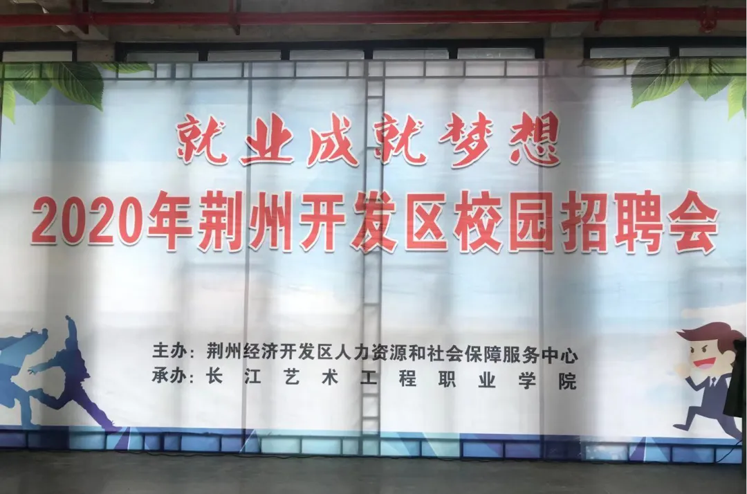 11月12日,由荆州市经济开发区人力资源与社会保障服务中心主办,长江艺术工程职业学院承办,以“就业成就梦想”为主题的“2020年荆州开发区校园招聘会”在学院纪南文旅校区举行。此次招聘会共吸纳了荆州市26家企业参加,设置招聘岗位300多个,为毕业大学生创造创业就业条件。学院2018级600多名学生参与现场招聘活动,签订就业意向协议的有近百名学生。